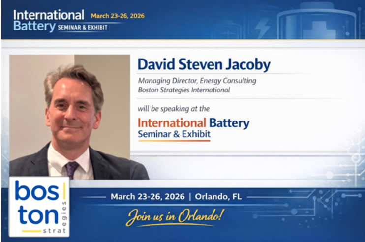 Boston Strategies International is pleased to announce that our President, David Steven Jacoby will be speaking at the International Battery Seminar & Exhibit 2026—the world’s longest-running annual battery industry event […]